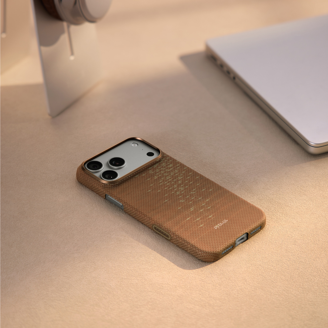 Mang vẻ đẹp lấp lánh của ánh nắng phản chiếu trên mặt nước, PITAKA Ultra-Slim bộ sưu tập Glints of Gold đem đến chiếc ốp lưng như một tác phẩm nghệ thuật sống động. Sợi Aramid cao cấp kết hợp công nghệ dệt độc quyền Fusion Weaving tạo hiệu ứng vàng chuyển động mềm mại dưới ánh sáng, vừa mỏng nhẹ tinh tế vừa bảo vệ tối ưu và tương thích hoàn hảo với MagSafe.