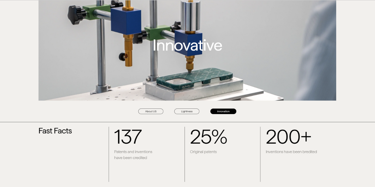 PITAKA được biết đến với triết lý tối giản và khả năng đổi mới vật liệu vượt trội. Mỗi năm, PITAKA đều ra mắt công nghệ mới, PITAKA hiện có hơn 200 phát minh, trong đó 137 bằng sáng chế & phát minh được công nhận chính thức. Đáng chú ý, 25% trong số này là bằng sáng chế gốc do PITAKA trực tiếp tạo ra.