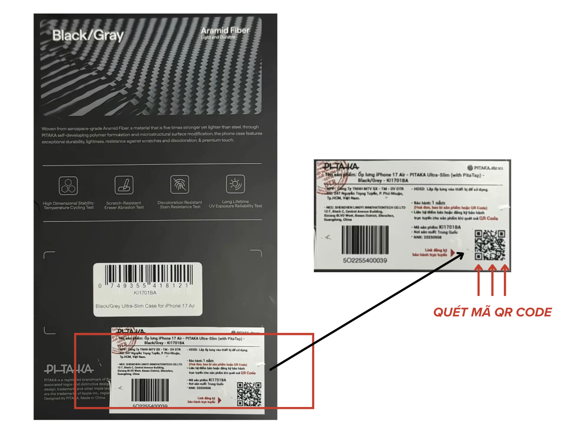 Bước 1: Quét mã QR in trên tem phụ DTR được dán trên hộp sản phẩm PITAKA