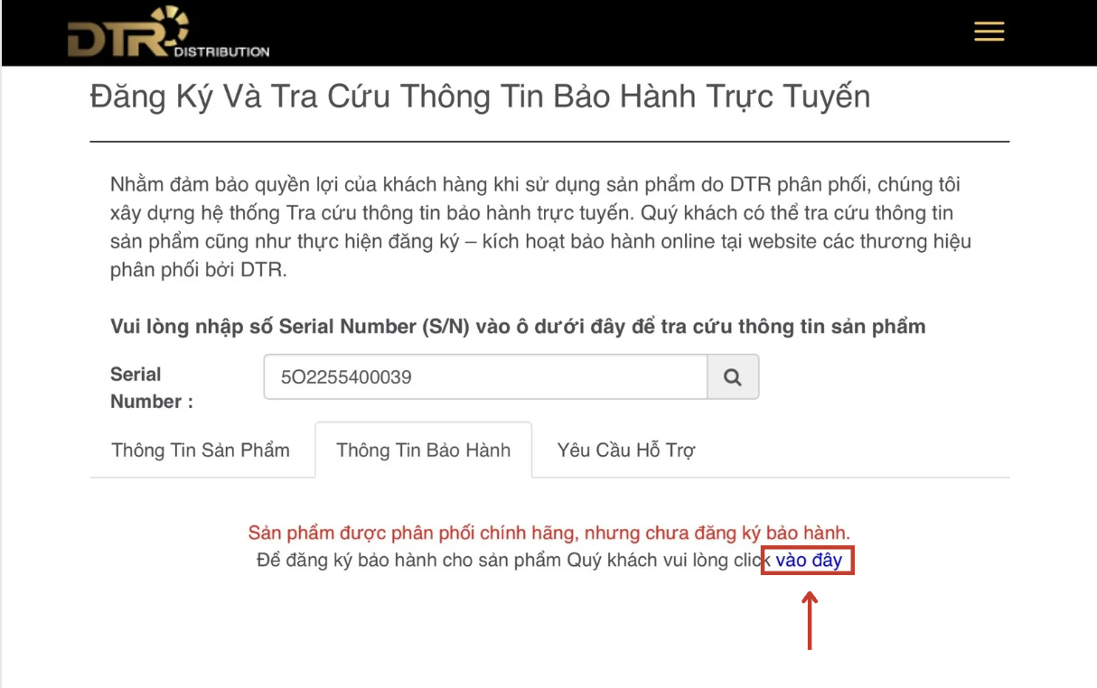 Sau khi tra cứu thông tin bằng cách quét mã QR code, nếu hệ thống xác nhận sản phẩm chính hãng do DTR phân phối nhưng chưa được đăng ký/kích hoạt bảo hành, bạn nên tiến hành đăng ký ngay để đảm bảo đầy đủ quyền lợi.
