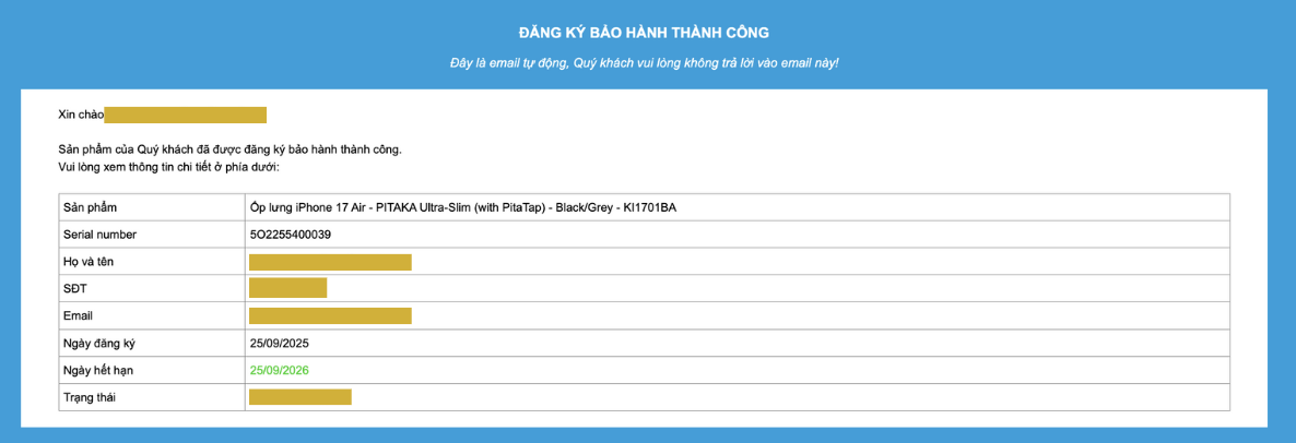 Với quy trình bảo hành trực tuyến PITAKA, người dùng có thể dễ dàng xác minh sản phẩm chính hãng, yên tâm sử dụng và rút ngắn tối đa thời gian trong các thủ tục bảo hành.