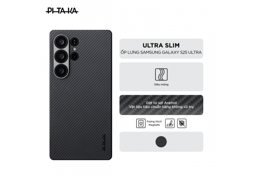 Khi sở hữu một siêu phẩm công nghệ như Samsung Galaxy S25 Ultra, bạn xứng đáng có một phụ kiện đi kèm tương xứng. Ốp lưng PITAKA Ultra-Slim được chế tác từ sợi Aramid hàng không – vật liệu nổi tiếng bởi độ bền vượt trội nhưng vẫn giữ được sự mỏng nhẹ gần như “vô hình”. Đây không chỉ là một chiếc ốp lưng, mà là sự kết hợp hoàn hảo giữa công nghệ tiên tiến và nghệ thuật thiết kế tối giản.
